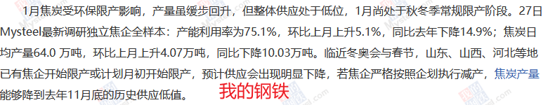 焦炭生产受限:当环保法规变得更加严格时,焦炭生产企业可能会面临更严格的排放标准和生产限制。例如,政府可能会实施“焦炭限产”政策以减少环境污染,如我的钢铁网提到的“焦炭环保停产”和“焦炭限产”情况,这些措施直接导致了焦炭产量的下降。